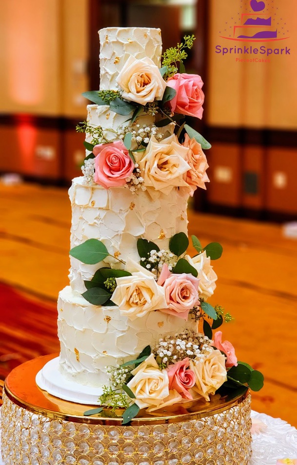 Our Wedding cake was absolutely stunning!!! She designed a gorgeous cake from just hearing my colors and my idea of the theme. I was not even around when she delivered and set it up so when I got