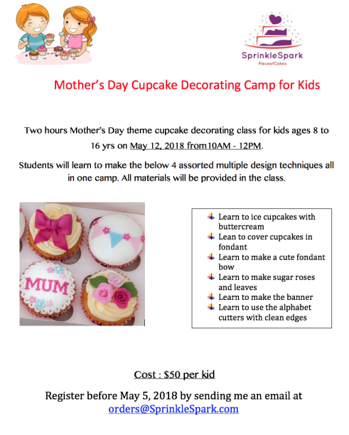 Do your kids love to watch Cupcake wars? Do they always wished to decorate one like a pro? Then you’ve come to the right place – we offer classes for kids of ages 9 to 14.